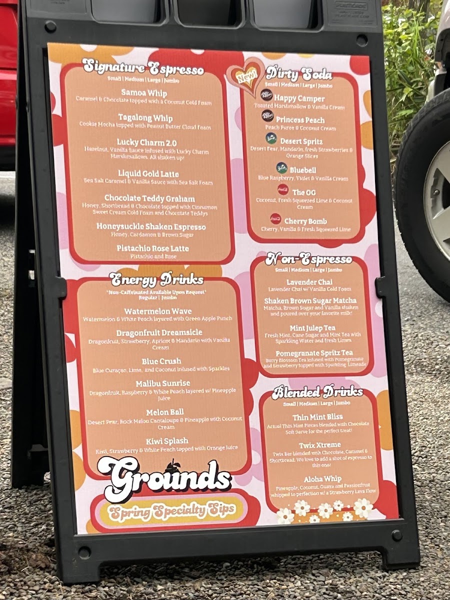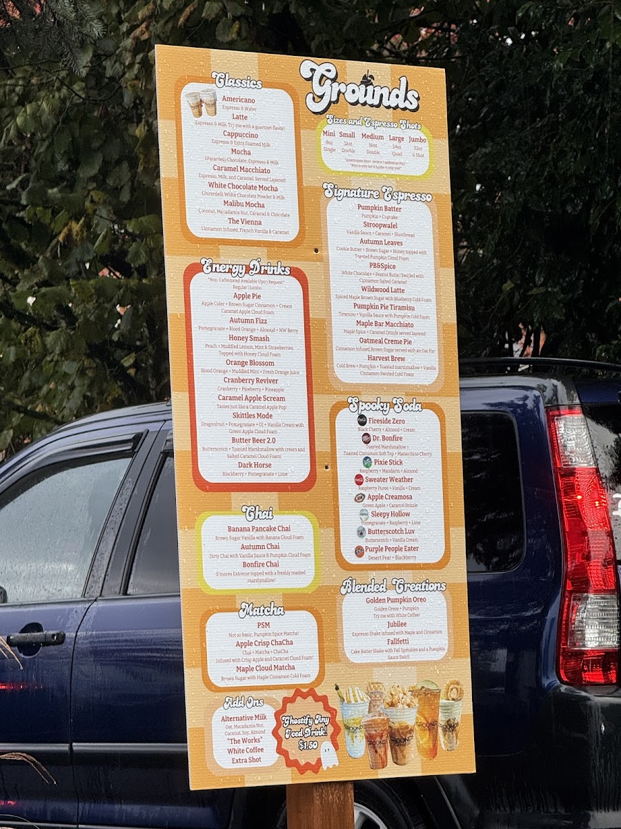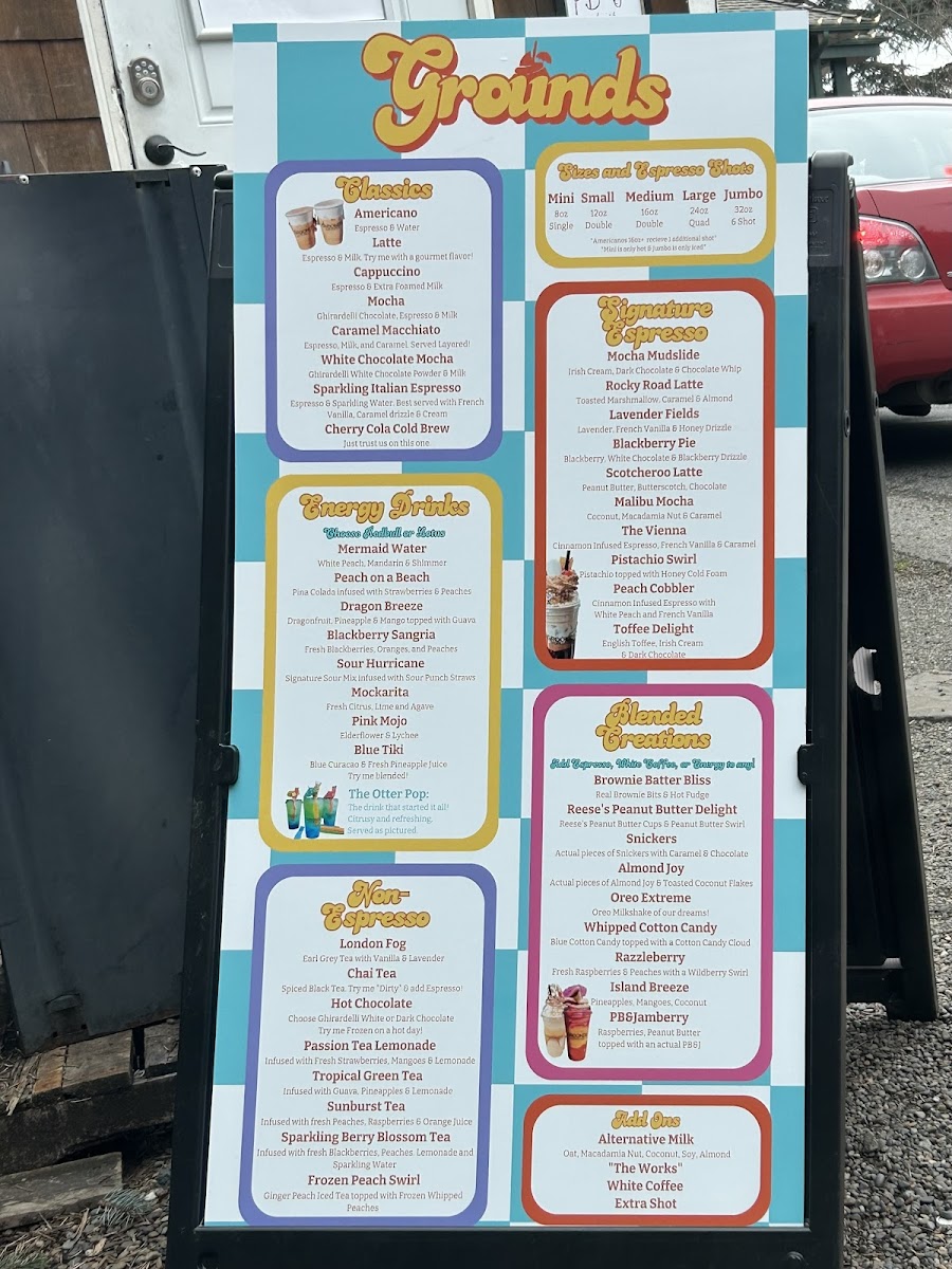 Beyond traditional coffee and tea, Grounds features carefully crafted specialty drinks that blend familiar flavors with playful twists—think caramel swirls, Thai tea, or seasonal blends like their Halloween-themed Snickers Mocha. These options invite visitors to savor something a little different while still fitting the café’s welcoming and laid-back vibe.